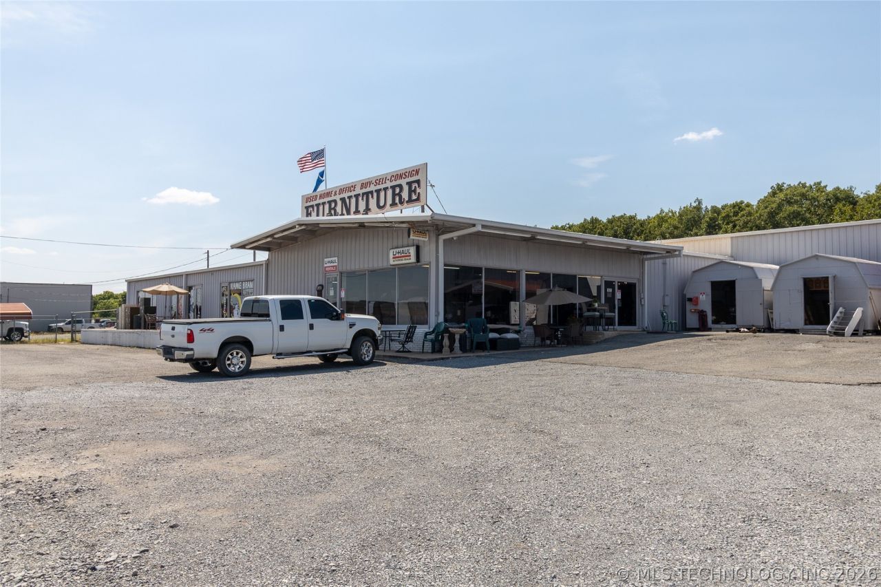 1.74 ACRES with a 10,809 sq. ft. industrial grade building in a high traffic area! This building was built for an International Harvester dealership and is currently being used as a Furniture Store and with 75 fully leased Davis Storage buildings. 10' x 12' and 2 - 14' x 24' storage units that are movable. This building has been utilized for many years as a successful Furniture Store that offers new and used quality furniture, U-Haul Business and storage units. The owners will sell the business also if interested. The furniture business has been a stable business in Mcalester and supported 3 families. If you are expanding your store you must take a look at this! It is fully heated and cooled With 5 air conditioning units and a mechanical room for the heat units. The building and lot could be utilized for light manufacturing, car dealership, trucking facility, warehouse etc. There is a loft area for furniture that can be removed and will leave ceilings that are 16' high. There is also a shop building on site and plenty of parking. Call for your viewing of this property!