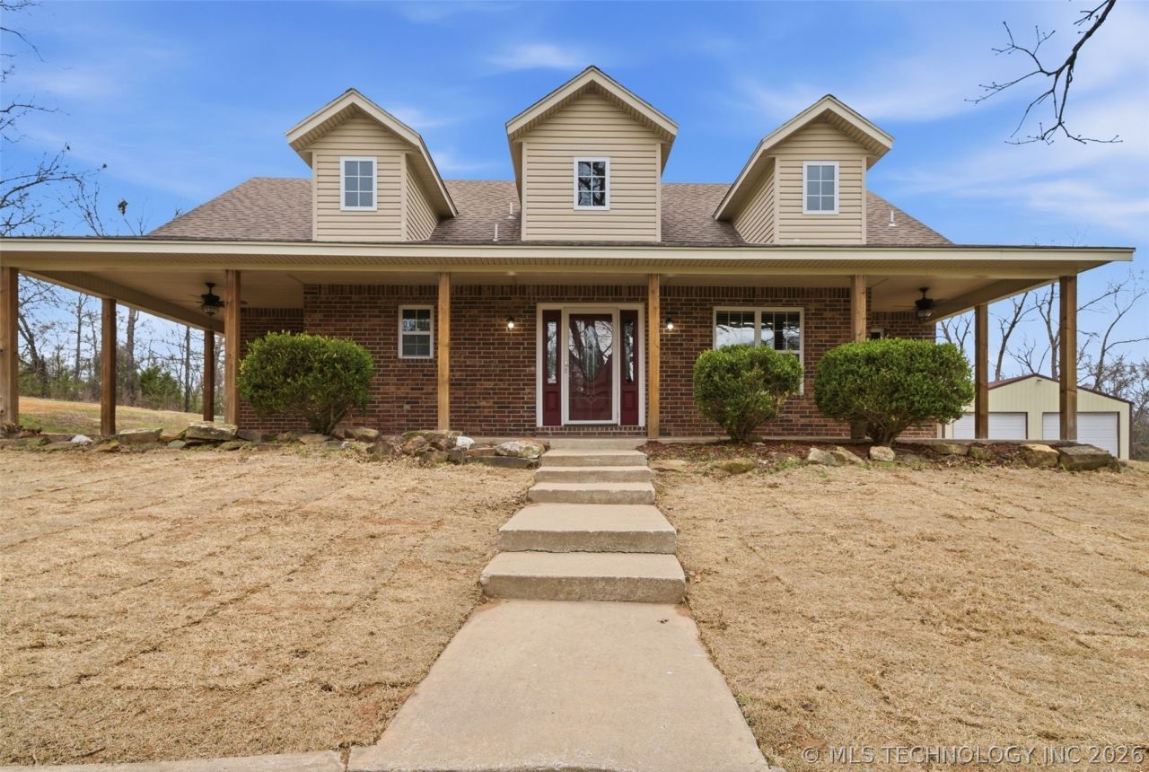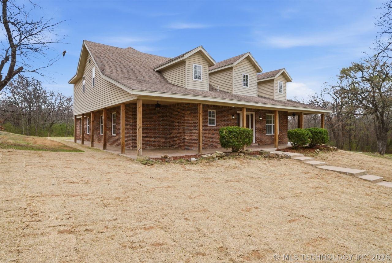 Beautiful Amish-built home on 5 secluded wooded acres in the fast-growing Coweta area featuring a 40x30 shop with attached covered workspace (approx. 40x40 total). Enjoy peaceful country living with a 3/4 wraparound porch and large back patio perfect for entertaining. Inside offers an open kitchen, new carpet, fresh paint, and updated light fixtures. The home also features a dedicated office, ideal for working from home and an upstairs game/family room. The shop features reinforced concrete floors and electric, providing excellent space for projects, equipment, or storage. Property also includes RV hookups and spa hookups already in place. A rare opportunity for acreage, privacy, a shop, and quality craftsmanship just minutes from Coweta. Don't miss this one!