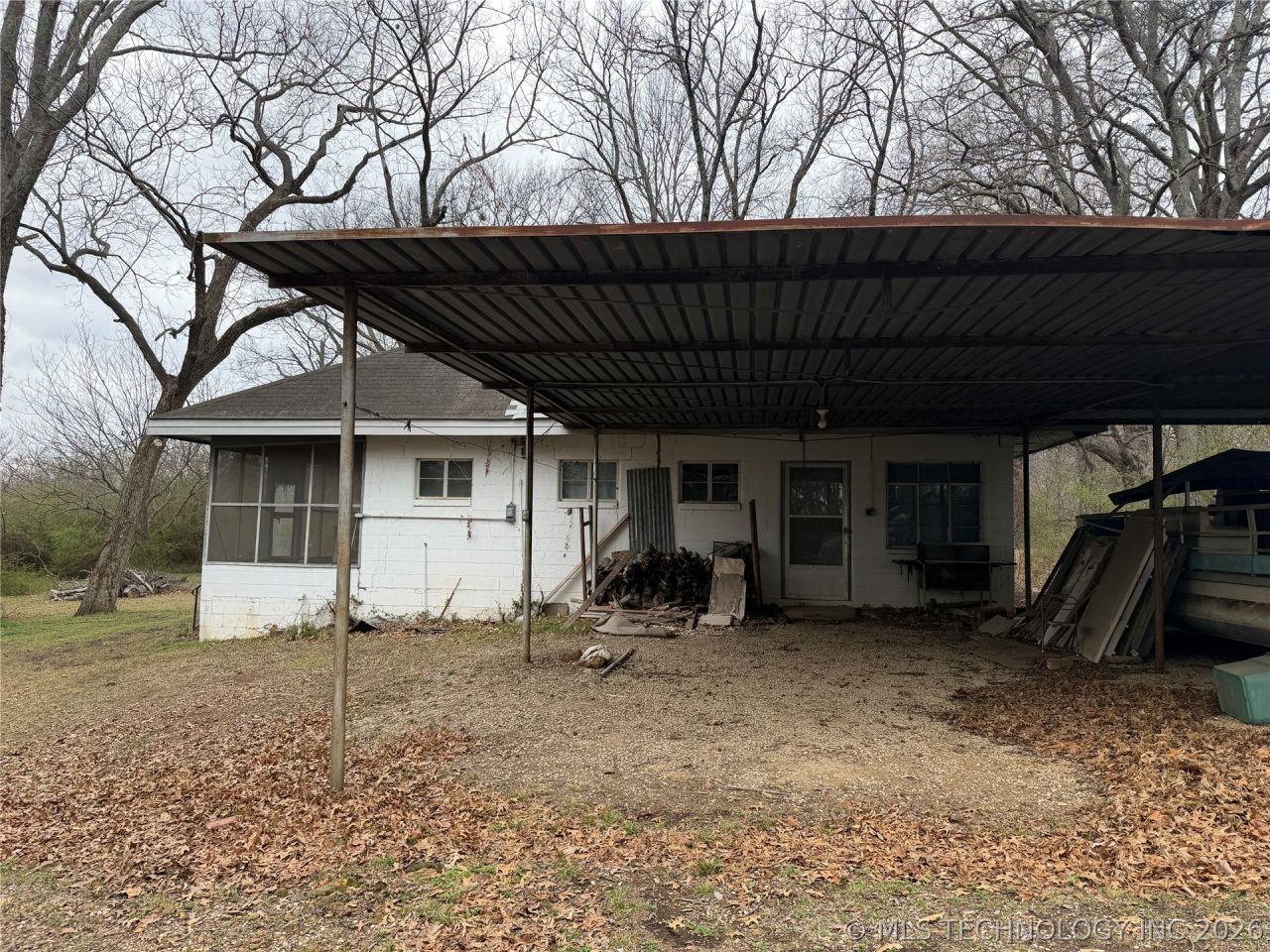 Tucked away on over 1.5 m/l acres near the lake, this property offers a rare opportunity to create your ideal retreat in a peaceful country setting. The home features 2 bedrooms, 1 full bath and 1 half bath, along with a 2 car carport and a detached corrugated metal garage with concrete flooring perfect for storage, hobbies, or workshop use. The beautiful land is dotted with mature pecan trees and provides access to the nearby cove for fishing, kayaking or simply enjoying the water. The existing house is in need of repair and is being sold as is, making it an excellent renovation project or a prime site to build your dream lake home. Utilities are available with gas, electric and rural water on site. Endless potential awaits in this scenic Wagoner County property!