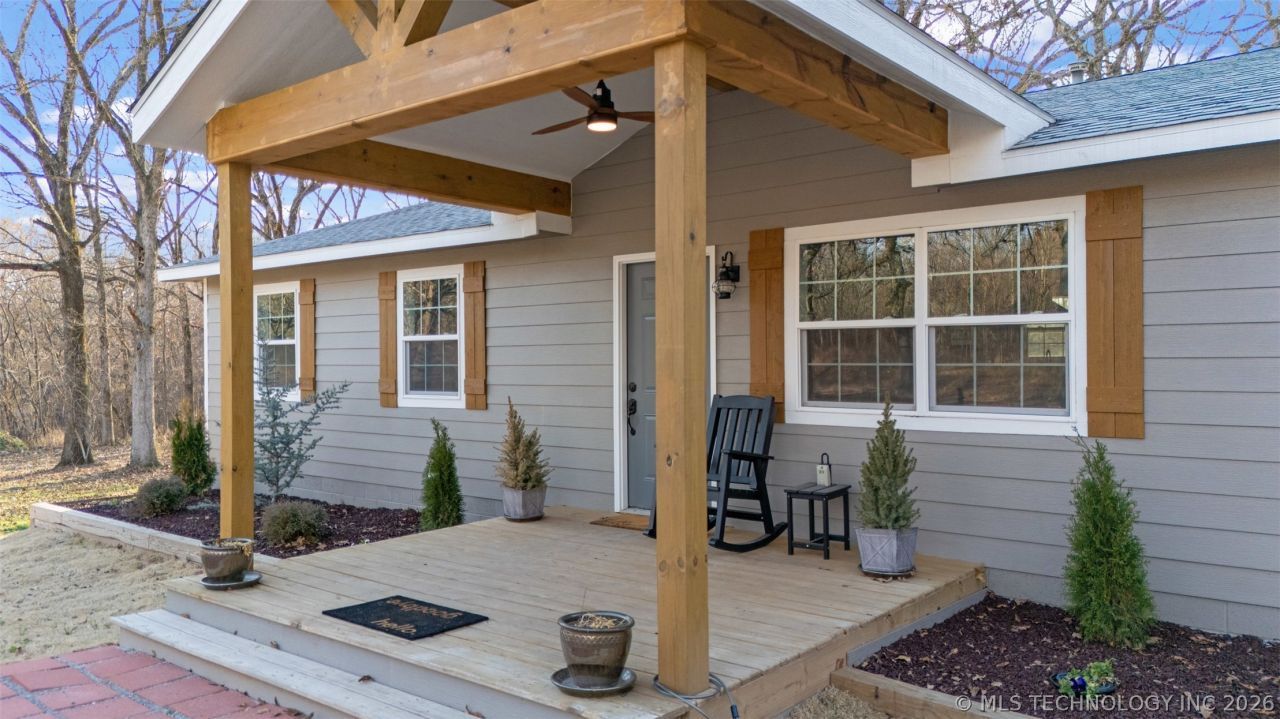 Welcome home to peaceful country living on 1 acre along a paved county road. This fully renovated home offers 1,629 SF under roof and has been thoughtfully updated from top to bottom. Enjoy your morning coffee on the new gable front porch or unwind on the spacious back deck overlooking fresh landscaping and a circle drive. Inside, you'll find waterproof luxury vinyl plank flooring, crown molding, quartz countertops, new kitchen cabinetry, and beautifully updated bathrooms with ADA-friendly features. Major upgrades include a new 40-year roof, siding, windows, HVAC system, plumbing, electrical (200-amp service), and hot water heater--giving you modern efficiency with classic country comfort. There's even a full 50-amp RV hookup with water, sewer, and electric. Turn-key, charming, and ready for wide-open skies and quiet evenings.