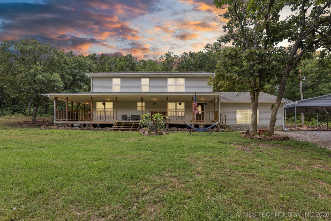 Seller offering $5,000 toward buyer's closing costs with acceptable offer! Enjoy the peaceful PAWNEE COUNTY, OKLAMOMA country lifestyle with this beautifully updated 3-bedroom, 2.5-bath two-story farmhouse with over 3,000 sq ft (CH) on 10 acres m/l in Jennings, Pawnee County. Surrounded by mature woods with a creek along the east side, POND, and fully fenced pasture for livestock, this property is ideal for hobby farming, recreation, or simply enjoying the quiet beauty of rural Oklahoma. Recent updates include new luxury vinyl plank flooring, fresh interior paint, new bedroom carpet, granite vanities, updated lighting, and ceiling fans throughout. The main level features a spacious primary suite with walk-in closet and private bath with double sinks, granite vanity, soaking tub, and separate shower, along with the kitchen and dining area, comfortable living room, half bath, and a large bonus room currently used as a bedroom that could serve as a den, office, or game room. The utility room and storage are located nearby, and a former garage area has been converted into climate-controlled living space. The second level offers two large bedrooms with walk-in closets and a full bath with double sink granite vanity and tub/shower combo. Outdoor amenities include a newly resurfaced circular driveway, 30x26 steel-framed carport, 10x12 storage shed with new fencing, pond, and a relaxing wrap-around covered porch...perfect for enjoying morning coffee while overlooking the land and wildlife. Improvements include new water well components and Culligan whole-home filtration with reverse osmosis. With acceptable offer, refrigerator, washer, dryer, and Culligan filtration system may remain. The location also offers excellent potential for short-term rental or Airbnb opportunities, being approximately 20 minutes from Keystone Lake, about 35 minutes to Tulsa and Stillwater, and near Hallett Motor Racing Circuit, which attracts visitors year-round for racing events.