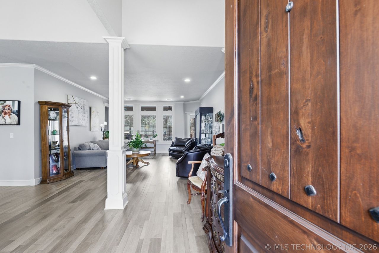 Are you looking for your perfect home in Bixby? You must see this beautifully updated home with stainless appliances. A double oven and ice maker in the kitchen are just what the chef in you wants. Ample cabinetry in the kitchen for all your needs. There are a coffee bar and seated desk as well. The home is flooded with natural light and windows galore. Wood blinds stay with the home. This home boasts ample storage throughout; there is no shortage of closet space for storing all of your extra food, linens and portable appliances. Spacious and open on all floors. There are two, yes two bonus rooms one functions as an office space the other the perfect game room. Outdoors you will find incredible landscaping around the pool and hot tub. There is a sprinkler system to keep the landscaping lush and green. Mature trees provide cool shade in the summer heat. The covered patio is the perfect space for cooking and entertaining outdoors by the pool. This is the ideal home with the space to stretch out and grow; with all the beautiful amenities you will need. Come and see this wonderful home in the Graystone subdivision.